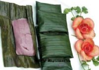 荷叶粑由一种名为“紫叶”的天然植物制作而成。因紫叶、芭蕉叶仅产于热带、亚热带地区,故合叶粑也只有居住在热带、亚热带地区的群众方能制作。由于色、香、味、形独特,富有民族特色,当地群众也常将其作为馈赠礼品送给远方的亲朋好友。