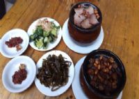 食用时再离火上桌,配花生油辣椒一碟,各色泡菜一碟,海带汤一碗食用。