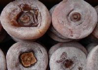 柿饼的加工程序较为复杂:白露过后,摘下七成熟的柿果,用刮刨刮去外皮,放在篾编的柿架上,白天在阳光下爆晒,晚上再用火烘烤,待柿子颜色变为棕红时,用手反复捏压成圆形饼干状,用棕叶捆扎,一般十个为一扎,然后将捆扎好的柿饼储藏,随着气候的变冷,柿饼中的糖份自然分泌,在柿饼上结成一层白色的柿霜,集色、香、味一体,十分诱人。