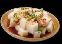 米豆腐,是用石灰水将大米(主指梗米)浸泡后,用清水洗净大米,然后用石磨或粉浆机将大米磨成米浆,倒入铁锅中用文火煮熟并抖成面状,攒出盛于瓷盆中冷却即可,通常作为冷饮食用,冬季寒冷时,可用沸水煮热后食用。食用时,将其切成长方条状或四方块状,拌以葱花、香油、食醋、味精、酱油、焙黄豆、折耳根等佐料即可食之。在岑巩县龙田镇一年四季都可食到米豆腐。每逢赶集,上街赶集的人们都要到米豆腐店饱食一餐,平时,过往行人也不例外,品尝米豆腐的人也不断增多,米豆腐的生意越做越红火。