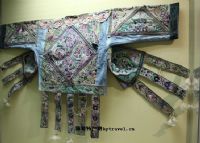 百鸟衣为长衫绣衣,由背、肩、袖口、前胸、后背、前后摆片和衣脚着羽毛束等十几个版块构成。整件衣服集平绣、堆绣、打结绣、破线绣、钉线绣、辫绣、马尾绣等手工绣技艺艺术为一体,作工需三到五年。配以红、黄、蓝、黑、白等各种丝线绣出五彩斑斓的图案,每一幅图案都体现一只或几只写意形鸟图案,底布以土布为基调,每一版块均以茧片作白底。各个图案的鸟形状千姿百态、有抽象的、有几何图案的。