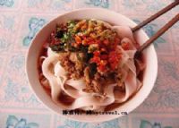凉拌粉属夏季消暑饮食,制作更为简便。将粉切成粉丝后,置于碗中,放上盐巴、辣椒及配料(炒熟的肉丝、肉末、肉片和开水烫过的绿豆芽、豌豆尖,以及葱花、生姜、胡椒面、酸醋、味精、盐巴等,拌匀即可食用。尤其是盛夏,骄阳似火,烈日炎炎。当人们不思吃饭时,常以凉拌粉来取代正餐,是最舒服不过的了。