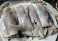 5.在铁盘里加入一勺糯米打成的浆,均匀铺满.