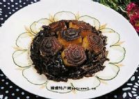 镇远陈年道菜专选取当地生产的头大、叶长、苔短的特等青菜作主料,经过选料、搓盐、翻晒、揉搓、剔筋、甑蒸、喷酒等十四道工序,精心加工制成。要求选好的青菜先去掉老帮叶,在阳光下曝晒。晒至菜叶发软,用水洗净,再挂起晾晒。待晒到八成干时,加盐揉搓(一般每百斤干青菜苔加盐二十斤)。搓好后,放缸里腌一夜;然后取出再晒,再揉,反复搓揉四、五次,直到茎、叶柔软,盐分浸入菜苔、菜叶为止。最后,进行抽筋、喷酒、甑蒸,装坛密封,过二、三个月后,即可开坛食用。加工道菜最费时的是抽筋工序。青菜的茎、叶内均有菜筋,只有抽去筋的道菜才格外鲜嫩爽口。因此,抽筋工序的好坏是决定镇远陈年道菜品质优劣的关键。抽筋完全靠手工操作,就是用针把菜内的筋一根一根地挑出来。