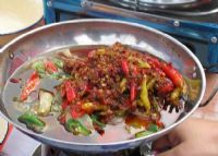 来到铜仁,最能体现当地人大口吃肉、大碗喝酒的热辣性格,恐怕这道菜最恰当了。吃刨汤是铜仁农家古老的一种习惯。临近春节前夕,到了熏制腊肉的时候,农家人把养了一年的大肥猪新鲜现杀,甚至还泛着热气的猪肉、猪血、猪内脏切成片,下锅翻炒,再用猪大肠熬制一锅汤,加一些自酿的甜酒,去腥增鲜。待到肉熟汤滚,再将其猪肉等又混入汤锅中,加辣椒、蒜苗,吃的时候可以边吃边加血旺、蔬菜和豆腐。吃刨汤饭可不能太斯文,大碗酒、大块肉,如刘姥姥三进大观园,"食量大如牛,吃个0猪不抬头",吃得一饱二醉、东倒西歪、哈哈大笑才是刨汤饭的真性情。越热闹主人家越是开心,这也是为了取一个好意头,期待来年丰收更盛。这就是铜仁的"刨汤",而所谓"刨",其名来源于木匠的工具,像推木头一样,把猪身上的猪毛给刨掉,以得其名。