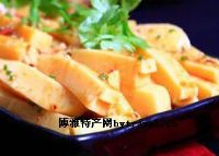 豌豆粉是用干豌豆粒磨瓣去皮,用水泡发后,掺水磨成浆,经过滤、熬者成糊,冷却后凝固而成。质地细腻滑嫩,色泽姜黄,口感有豌豆的特殊芳香,经刀功成形后烹调可热吃或凉吃。