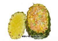 做法:一、将新鲜菠萝切半,用小刀将其肉挖出,切成1CM大小的丁浸入盐水,保留1/2个菠萝壳做容器。二、青红椒、切1CM大小的丁。三、锅中热油,待六成热时,磕入鸡蛋,抄成鸡蛋碎,盛出备用;虾仁过开水汤熟。四、锅内留底油,待热后依次放入洋葱、青红椒翻炒片刻后,加入香米饭,炒匀。五、往锅中加入鸡蛋碎、菠萝丁、虾仁,放入盐、蚝油、鸡精调味。六、将炒好的菠萝饭盛入菠萝碗中,撒上熟腰果仁即可。