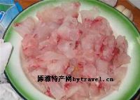 4、切鱼肉:要求所用刀要利,砧板要干净,不掉屑的。将用吸水纸包好的鱼肉剥去,不要在鱼肉上留下纸屑。鱼皮朝下放在砧板上,用刀斜着下刀,将鱼肉切成大片、极薄(约2毫米厚)的薄肉片,另处放入盘中,鱼肚处的肉较薄,不能切片,就切成细长的丝。