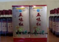 利用传统酿制工艺结合现代先进设备以五味子饮品系列为主、盐井古酒(白酒)系列为辅,科学的研制出以五味子鲜果为原料发酵的干型、中型、甜型五味子酒:“五味子”属于木兰科多年生落叶藤木,又名面藤、山花椒,生产于海拔600~2400m的背阴山地灌木丛中,是珍贵的滋补性药用植物。在《神农本草药》中列为上品,其果实甘、酸、辛、苦、咸五味具全,故“五味子”。五味子呈不规则的圆球形或扁球形,形状和山葡萄相似,为珠连串状,果实直径5-8mm。外皮紫红色或暗红色,皱缩,显油性,果肉柔软,有的表面呈黑红色或出现“白霜”。果肉气弱、味酸、有香气,味辛、微苦。以粒大、果皮紫红、肉厚、柔润者为佳。