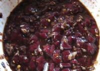 “白旺”是用动物生鲜血加工的凉拌菜。多限于健壮的猪(病猪、母猪忌用)鲜血。白旺的制作方法是:把炒干了的适量食盐放入一个适中的盆里备用。当锋利的尖刀戳进猪脖颈后刚抽出,用放好盐的盆接住喷溅而出的鲜血、并用一把筷子迅速搅拌,不让其凝固。鲜血快流淌一半后,便把盆移升。因为做白旺的血只能用喷溅而出鲜红的那点,其余的不宜用。再用切细炸香炒脆的猪肝片,炒香的花生米面、姜、蒜和切细的薛莱根适量而均匀地撒入血里,血即凝固,再把一个烧得鲜红的火炭吹去灰尘,放进里面,随着一声“哧”的响声,冒出一道清烟,毒气赶去,白旺即成。端上酒席,其色鲜艳,鲜甜爽口,其味无穷。此菜极讲个“鲜”——血要鲜、隔夜不用,莱要鲜、隔餐不食。