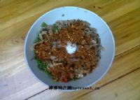 2、把煮熟的鸡杂切小放进鸡血里,然后放入生姜,生辣椒,再放入芫荽、盐、味精、干辣椒面,拌匀即可。