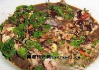 “白旺”是用动物生鲜血加工的凉拌菜。多限于健壮的猪(病猪、母猪忌用)鲜血。其制作万法是:把炒干了的适量食盐放入一个适中的盆里备用。当锋利的尖刀戳进猪脖颈后刚抽出,用放好盐的盆接住喷溅而出的鲜血、并用一把筷子迅速搅拌,不让其凝固。鲜血快流淌一半后,便把盆移升。因为做白旺的血只能用喷溅而出鲜红的那点,其余的不宜用。再用切细炸香炒脆的猪肝片,炒香的花生米面、姜、蒜和切细的薛莱根适量而均匀地撒入血里,血即凝固,再把一个烧得鲜红的火炭吹去灰尘,放进里面,随着一声“哧”的响声,冒出一道清烟,毒气赶去,白旺即成。端上酒席,其色鲜艳,鲜甜爽口,其味无穷。此菜极讲个“鲜”--血要鲜、隔夜不用,莱要鲜、隔餐不食。