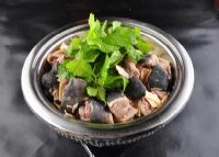 花山带皮羊肉的吃法:置于文火上边煮边吃,根据各人喜好添加羊杂碎、干发菜、时鲜蔬菜等共煮,吃到最后就浓汤煮为线、面条。