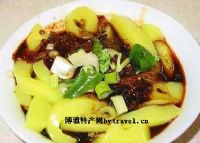 米凉虾是云南风味小吃。用大米制浆煮熟,用漏勺漏入凉水盆中而成。因头大尾细形似虾,故此得名。用它配入糖水,加入玫瑰糖,是夏季解渴佳品。用湿纱布将乳扇盖好使之回软后,剪成宽3毫米的条。锅上火烧热,移到小火上,注入冷花生油下乳扇条迅速翻动,使之受热均匀,炸泡成蛋黄色,捞出放入木框模内。将白糖、蜂蜜、始糖、猪油、水上锅,上火。到能拉出丝时起锅倒入炸好的乳扇条中,撤上芝麻,充分拌匀成型(大块状)出模,用刀切成宽4厘米、长5厘米的长方块,待冷却后装盘。