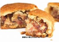 民国初年,"吉庆祥"糕点铺主人陈惠泉在"四两坨"火腿红饼的基础上,首次烤制出硬壳火腿月饼,大受欢迎,生意兴隆,铺子也由小而大。吉庆祥云腿月饼的制作方法是:首先将火腿洗净去骨,切成大块蒸熟,然后再改刀切成黄豆大小的肉丁,与蜂蜜、白糖、熟面拌匀,作为馅心,包入用白油、糖粉、蜂蜜等合成的面皮之中,用中火烤熟即成。这种月饼具有酥、松、香的特色,成为云南具有代表性的名特食品。