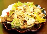 昆明名菜之一。用青辣椒、红辣椒加蒜片与松茸片相炒,以肉汤加湿淀粉勾芡,白中缀红绿,清香味醇厚。 小知识:有“菌中之王”美称的松茸,肉质细嫩,甜润甘滑,有一种特殊香味,日本人还来这里收购,据说能延年益寿。