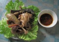 永平大块鸡,一则鸡大,二则肉块大,故名。它选用正宗土鸡做原料,所选用的土鸡必须达到成年标准,看起来要个大、体壮。宰杀洗净后,进行肢解。肢解出来的鸡,头、翅膀、大腿、脚完整分明,鸡身则被砍剁成大块状,其肉块之大,达到普通砍剁方法的5倍左右。永平大块鸡源于博南古道的马帮饮食文化,当年的赶马人剁肉要剁得比茶杯口大,且一只鸡仅肢解为18块,吃的时候不用更多的劳驾筷子,用手就可以搞定,十分方便。
