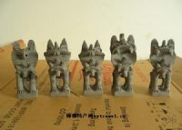 2.鹤庆的瓦猫以赵屯出产为多,以郜师傅所制最具艺术价值和灵气,他的瓦猫每年有2~3万只出口。作为艺术品,郜师傅的瓦猫普通形状的售价在30元左右一个,较为复杂的则各有价格。在别处,有“鹤庆猫福”的印章,才是郜师傅的作品。