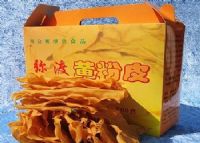 长约30厘米,宽约10厘米,金黄透亮的弥渡黄粉皮,是家庭必备的干菜,深受各界人士的青睐。制作工艺:将豌豆磨成粉,按比例兑水,加佐料,盛入锅里搅拌至熟,取之入筛内,冷却后用马尾削成皮状,透明为最佳,待粉皮凉干后,便可上市。食用:可油炸,味道香脆回甜;可配酸腌菜煮吃,色鲜黄而味美。