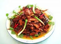 永平黄焖鸡,是当地的一道特色菜肴,也是当地老百姓招待客人的佳肴。“黄焖鸡”的制作方法简单,但是要把它做好,就不太容易了。黄焖鸡采用当地优质土仔鸡,宰杀好洗净,剁成2厘米大小的方块;然后将干辣椒去把、除籽,切成长节。注入锅内的香油量要适中,将油烧热,把花椒、姜、干辣椒放入锅中炸成黑色,投入仔鸡块,加入适量的酱油、葱、蒜等,翻炒几下,盖上锅盖,然后等待鸡肉水分干而发黄,再翻炒两次即可装入盘中食用。要说选料、配料,大家都能做到,为什么唯独永平黄焖鸡最具特色呢?这关键在于火候的控制,炒焖鸡块一定要掌握火候,只有用旺盛的火炒焖出来的才不会失去真味。