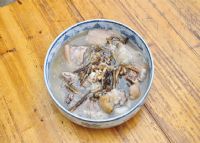 鲜猪脚炖煮鸡足山白草乌,是宾川民间流传久远的土特药用保健风味食品。草乌有黄、黑、白几种,多产于海拔2500米以上的山地里。有纺锤形之肉质根系,最大者仅有小指粗细。属于较为剧毒之药材。但若使用得当,且是温经通络、祛风除湿、散寒止痛的药用佳品。在佛教旅游胜地鸡足山,由于具有独特的气候水土和优越的自然条件。出产的鸡足山草乌特别是白草乌等其药用功效,与它处所出产之相比,更具有其独道之处。但因草乌有毒性,炖煮时,要求极其严格。需要谨慎细心操作,防止中毒。