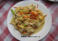 杜鹃花炒蛋时丽江的一道特色菜肴。丽江被誉为植物王国,光杜鹃花就有一百多個品種,而杜鹃花含有轻微毒素,因而可食用的卻不多,將其精心烹制,使之成為了花宴中的一道特色菜。