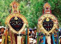 西藏的面具是从宗教里派生出来的一种工艺品,藏语称为“巴”。一般分为“跳神面具”、“悬挂面具”和“藏戏面具”三种。跳神面具的图案有鬼怪、护法神、仙人、动物图腾等,主要在寺庙逢重大节日举行的跳神仪式上使用。