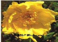 大花黄牡丹为毛莨科芍药落叶灌木。叶为2回3出复叶,带有美丽的青铜色。花(2)3~4朵生枝顶或叶腋,花瓣、花丝与花药均为黄色;开花期在5月份,结果期约在8~9月份。