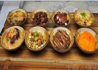 相传唐末安史之乱唐玄宗避乱自长安南下去成都,途经营盘(今留坝闸口石)连日奔波肌肠辘辘,遂问询当地山民:“卿家有饭否,不择精粗,但且将来”。百姓还是通情达理,纷纷拿出各家山货、腊肉,加以物料烹好献上。这些平日吃腻了珍馐佳肴、山珍海味的皇亲国戚们“争以手掬食之、须臾而尽、犹未能饱”。唐玄宗感慨万千吩咐随从付了饭钱,并赐名“八大碗”已是留坝人民逢年过节,招待贵宾的必备佳肴。有民谣为证“山美不过紫柏山,好吃还算八大碗”。