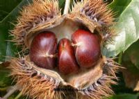 1、外在感官特征:留坝板栗多近半球型,果个适中,皮薄油亮;果肉淡黄,易剥离;生食脆甜;熟食面、甘、醇、香,栗味浓郁。2、独特内在品质指标:每100g留坝板栗中,淀粉含量不高于55g,膳食纤维含量不低于4.5g,铁不低于1.2mg,钾不低于580mg,锌不低于0.65mg,16种氨基酸总量不低于4.6g。3、安全要求:留坝板栗品种选用及栽植管理符合国家《食品安全标准》规定,人工栽植板栗幼苗全部符合国家Ⅰ级苗木标准,管理严格遵守《农产品质量安全法》规定。