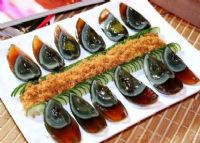 西乡松花变蛋,产于陕南西乡县是陕西独具风味的传统名特产品,可称得上我国松花变蛋的“状元”之一。西乡县松花蛋的特点是:蛋体离壳,易取易剥,以手摇之,有颤动感;剥去蛋壳,晶莹油润,呈透明的茶褐色,形似琥珀,具有弹性,表面满布美丽的晶状松枝花纹;蛋黄略带溏心,外圈墨晶,内呈橘红,油亮照人,层次分明;咸淡适宜,柔软细腻,滑润爽口,回味无穷。故当地有“离了松花蛋不成席”之说。