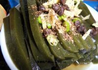 这种树木喜欢阴凉多水的环境,一般长在山沟里小河边,小时候我们上山放牛经常去采摘这种名叫——黄金叶又称臭黄金的树叶,回家后晚上就搅好了,第二天可以去集市上卖,或自己吃。美味可口。 宁强有一样特色美食树叶凉粉,使用有一种树叶叫做凑黄金的树木之叶制作而成,做法是用该树木叶子取下约一公斤(半桶),放在木桶里用柏树灰开水冲掠,使用擀面杖在桶里不断的搅,将叶子搅化,然后将搅化的叶汁用碗盛好凉凉,成凝固状,就可凉拌食用;凉拌时用蒜、盐、味精、花椒、醋(浆水)、油泼辣子等,拌好就可以吃了,纯天然美味。有养生、养胃、延年益寿之功效。