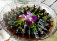 松花变蛋是陕西独具风味的传统名特产品,用石灰、食盐、茶叶等裹制鸭蛋密封而成。特点是蛋体离壳,蛋清晶莹滑润,褐色透明,形似琥珀;蛋黄略带溏心,外圈墨晶,层次分明。咸淡适宜,柔软细腻,滑润爽口。