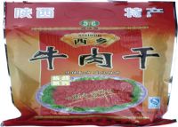 西乡牛肉干选用的西镇牛被誉为全国八大优种黄牛之一。选用该牛的腱子肉经过腌、烤、熏、烘干等程序加工而成的牛肉干向以色红、味酥、清香、可口、耐储存,销路广,风味悠长而驰名省内外,是不可多得的节日佳肴。