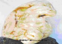 一、形状千奇百怪,充满天然情趣。镇安丹麻石均以窝状产出,而以独立的块状成形。许多丹麻石不用打磨,洗干净后就是一件精美无比的天然“工艺品”,有的似飞禽走兽,有的似人物或其它物象,一石一天地,一景一首诗。丰富的造型,千变万化的形式,丰富逼真的效果,不沾一点人工痕迹,是大自然造化的瑰宝。笔者收藏的一方“雏鸡”,一对圆圆的眼睛,尖尖的嘴巴,丰满的造型,真叫人见人爱。石友纪大银送展的“大吉祥”、“堆金垒银”均获金奖,赚足了赞誉。这些丹麻石不经任何加工,件件都是精品,有的还是珍品、神品。