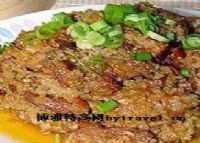 用香苜蓿制作的粉蒸肉,我在丹凤县品尝过。厨师告诉我,制作方法与普通粉蒸肉略同。将凉干的香苜蓿洗净、煮软、切段。小麦面粉炒熟。二者相拌,加猪油,加糖,加适量调料。肥猪肉去皮煮半熟后切片。像粉蒸肉一样,装碗上笼蒸制。扣人盘中时,上边是排列整齐的肉片,下边是如柔软铺垫的香苜蓿。吃时内染苜蓿香气,苜蓿之香又与肉之香相混合,别是一番香味。