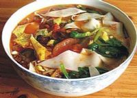 眉县炉齿面的做法:制作炉齿面的关键是制面和调汤。原料以优质小麦精粉为佳。制作方法是用20%的水和1.5‰的食碱和面,搓到揉光,以湿毛巾捂盖10分钟左右,放在案板上用杠子反复叠压,使面团软硬适度,富有拉力和韧性,再搓条捏成约2两重的小块,擀成面饼,撒上面粉摞起来用湿布加盖备用。下锅前,将面团用手工擀成薄圆片,用刀切成宽细均匀,形如炉齿状的面片,用擀杖从横断面挑起,单碗下锅,在翻滚的沸水中上下飘浮,待煮熟后捞入碗中,即成纹理均匀、不叠、不粘、薄筋、光滑的炉齿面。调汤佐料的佳品是隔年陈醋、菜籽油、老生姜、大青叶、细辣椒面、肥瘦相间的大肉臊子和蒜苗等配菜。肉臊子必须肥瘦肉分开过刀,薄细均匀,先在炒锅内放入适量大油,溶化后倒入少量菜油,待油沸锅烫后,先倒入肥肉,后复翻炒至出油后,再投入瘦肉,用火炒到肉色变黄时,调入食盐、五香粉、辣面等佐料,以文火烫炒,约至七成熟时,调入食醋烹熟。调汤时,先在干锅内倒入适量菜油,等油烧沸后倒入开水,用食盐、陈醋、油辣子、肉臊子和配菜等烹调,撒上漂菜蒜苗,浇入面碗,即成味美可口的炉齿面。