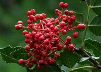 落叶灌木或小乔木,高3-7m,茎干通常有增大皮刺;枝灰色或褐灰色,有细小的皮孔及略斜向上生的皮刺;当年生小枝被短柔毛。奇数羽状复叶,叶轴边缘有狭翅;小叶5-11个,纸质,卵形或卵状长圆形,无柄或近无柄,长1.5-7cm,宽1-3cm,先端尖或微凹,基部近圆形,边缘有细锯齿,表面中脉基部两侧常被一簇褐色长柔毛,无针刺。聚伞圆锥花序顶生,花色大多为白色或者淡黄色,花被片4-8个;雄花雄蕊5-7个,雌花心皮3-4个,稀6-7个,子房无柄。果球形,通常2-3个,果球颜色大多为青色,红色,紫红色或者紫黑色,密生疣状凸起的油点。花期3-5月,果期7-9月。
