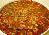 岐山哨子面(辣)臊子面是陕西关中地区的一种传统特色面食。尤以岐山臊子面历史悠久,以薄、筋、光、煎、稀、汪、酸、辣、香而著名。它的特点是:面条细长,厚薄均匀,臊子鲜香,红油浮面,汤味酸辣,筋韧爽口,老幼皆宜。柔韧兼而有之。是民间传统的面食佳品。制作时用大肉‘臊子’加豆腐,黄花,木耳,海带及鲜味的底菜,漂