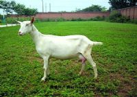 特点:莎能奶山羊具有奶畜特有的楔形体形,体格高大,细致紧凑。成年公羊体高80~90cm,体重75~95kg;成年母羊体高70~78cm,体重55~70kg。头长,面直,耳长直立,眼大灵活。被毛粗短,为白色或淡黄色。皮肤薄,呈粉红色。公、母羊均无角或偶有短角,大多有须,有些颈部有肉垂。公羊颈粗壮、母羊颈细长。胸部宽深,背宽腰长,背腰平直,尻宽而长。公羊腹部浑圆紧凑,母羊腹大而不下垂。四肢结实,姿势端正。蹄壁坚实呈蜡黄色。母羊乳房基部宽广,向前延伸,向后突出,质地柔软,乳头1对,大小适中。年泌乳期为300天,产奶量为600~1200kg,个体最高产奶量达3080kg,乳脂率为3.8%,产羔率为200%,利用年限为10年左右。群众称西农莎能羊有“头长、颈长、体长、腿长”四大特点。西农莎能奶山羊以体格高大,泌乳性能好。适应性强,贵传性稳定和改良土种羊效果显著闻名全国。