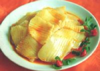 制作方法是:取上乘精粉适量,拌匀揉成面团,将面团放于凉水盆中反复揉洗,直到洗净面筋为止。再将洗出的面水过箩沉淀,在凉快干净处沉淀一夜。第二天滤掉在上面的清水,把粉浆用小火在锅内提炼成团,人工搓成小块、笼蒸一小时后出锅,用飴络床压制成粉条状。或用文火在锅里边搅边炼,炼成半熟为宜,再揉成细长条,置于笼内蒸熟。然后缓缓晾冷,用锋刃片切成极薄的片,佐以蒜泥、姜末、陈醋、精盐、香油,即可食用。御面筋光柔软,光滑爽口。