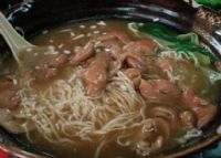 油汤面制作方法如下:用纯菜油炒五花肉,加适量姜末、十全大料、盐、醋制成躁子;用菜油炒金针、木耳、蒜苗,加调料制成底料;将盐、醋、生姜、鸡精、大油放入水中烧开,先下底料,后下葱花、蛋饼,制成汤;用精粉和面,然后擀薄切细,煮熟后用温开水过一下,然后挑一筷头在碗内浇汤而食。特点是面薄筋光、汤鲜味美、油而不腻。