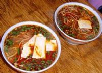 咸汤面,咸辣出头,筋韧爽口。碗内生姜黄、葱韭绿、油辣红、豆腐白,色鲜而合谐,食后余香盈口,周身微汗,使人食欲大振,顿觉轻爽。清早食用一碗,日久能暖胃活血,有食疗之功效。