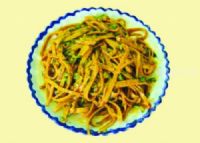 把燕麦倒人开水锅蒸成三成,出锅晾干,磨成粉,用水揉拌成薄饼蒸熟,出锅稍凉后,切成细条或薄片,类似玉面,精细柔韧绵软,一般凉拌食用。原出于环县北部,现风靡市内外,尤为糖尿病患者所求。