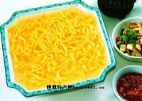酸汤子是纯正的满族小吃,也是玉米面制成的,形状和颜色都类似馇子,比馇子粗些,颜色浅些。因为经过发酵,味道要比馇子酸很多。它的做法是把玉米在水里浸泡一星期左右,之后用磨磨成水面,再用细纹布袋将水面里的粗渣子过滤掉,然后把过滤后剩下的细面放在缸里进行发酵,到有点酸味的时候捞出来,就变成汤面了。