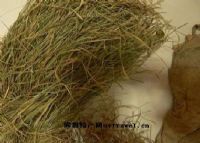 垫在靰鞡里的靰鞡草并非是一种草,其种类依地区和使用习惯而异。具体有塔头草、羊胡子草等几种,有的生长在沼泽地,有的生长在山林间。还有用梳成细条的苞米皮子代替的。靰鞡草共同的特点是茎叶细长,干燥后柔软、韧性强。以长白山区的塔头草比较常见。在二伏时割取的称“青根子”,秋霜后割取的称“红根子”。割取后捆成小把,在竿子或绳子上晒干后收存备用。穿靰鞡时,先把布靿子围垫好,用木棒把草捶软,抖开横斜交错地放在鞋口,用手絮成趾掌、脚跟处略厚的草窝。脚伸进去后,把露出的多余长草的拽出,围靿子盖住脚背掖好,然后按交叉顺序缠系带子绑紧。脱下靰鞡时,要把草掏出放在锅台上或炕上烘干,以便下次穿用。