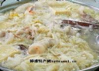 做法:把五花肉切成长约5cm的薄片。酸菜切成细丝洗净。炒勺内放入肉汤,烧开后把肉片、酸菜、粉条放入汤内,开锅后移在小火上,撇净浮沫,炖10分钟。加上精盐、味精,花椒水即可。