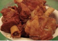 4. 加鸡精适量,转中—大火敞盖炖约30分钟 (目的是将汤汁略收,使肉骨头进一步入味)后即可。